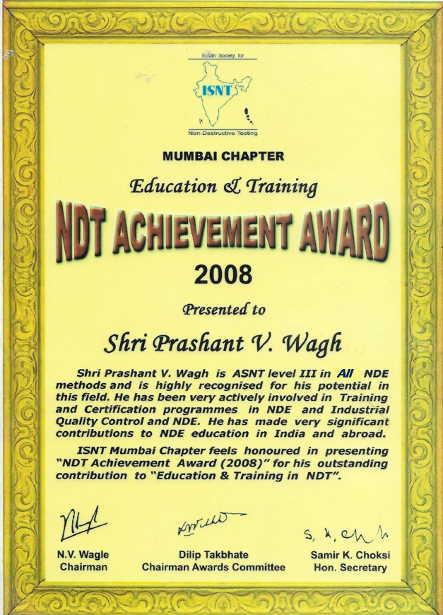 The Level II training is being offered by our specialist trainers under the guidance of our chief faculty Mr. Prashant Wagh who is a Mechanical Engineer with over 35 years of rich industrial experience, Honorary Life Member of ASNT & certified ASNT NDT Level III person in all Eleven NDT methods currently offered by ASNT.